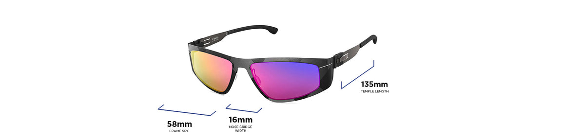 FLX_S01 - a six-base sunglass model that exudes sporty elegance and exemplifies the innovative collection. The lenses combine refined aesthetics and functionality. The top line subtly emphasizes elegance, while extended side pieces offer a new perspective on ic! berlin's iconic designs. Like all ic! berlin frames, FLX_S01 is 100% designed and manufactured in Berlin.