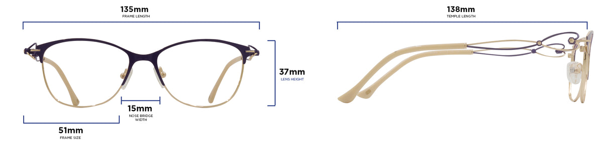 - Temple Length: 135mm
