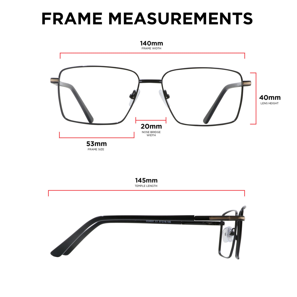- Temple Length: 145mm