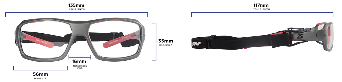 • Temple Length: 117mm (Strap with Silicon Hinges for Grip)
