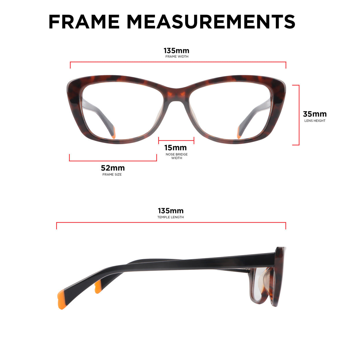 - Temple Length: 135mm